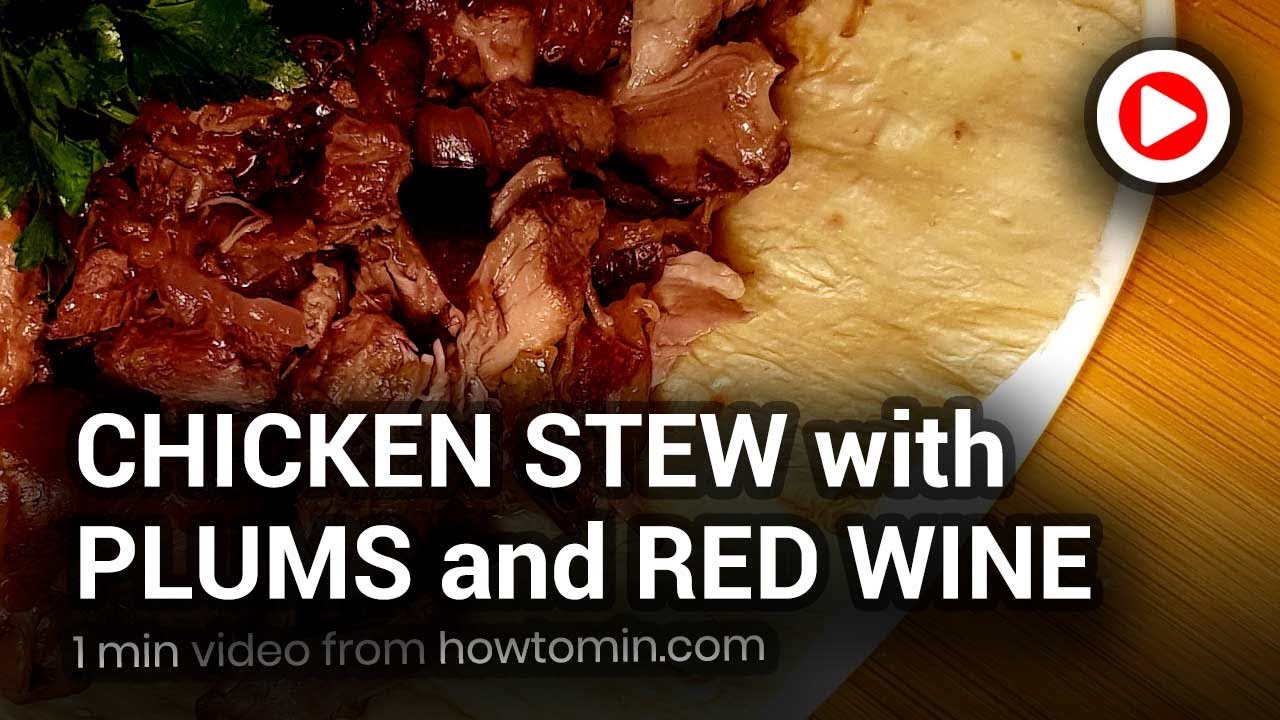 In this a quick video where we show how to make a Chicken Stew with Plums and Red Wine. This cooking idea will help you to make an excellent stewed chicken in French Cuisine style. Using this easy chicken recipe, you will cook a tasty homemade stew for dinner. Cooking time is about 2-2.5 hours. The key stone ingredients of this recipe – Chicken (Chicken thighs, but you can make this stew with chicken breast), Plums and Red Wine (here we use semi-sweet Shiraz Wine). For this Chicken Stew, we recommend to use thyme as flavor and parsley for garnishing, when serving.