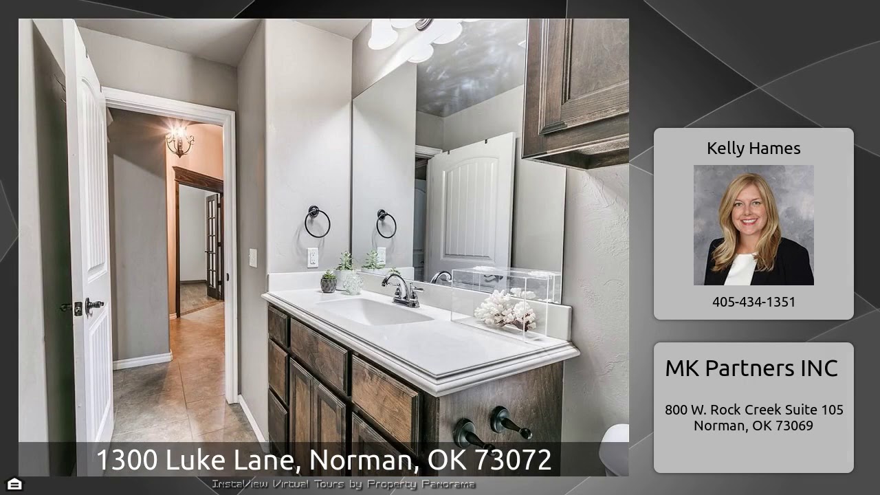 The Virtual Tour for the property at 1300 Luke Lane, Norman, OK 73072 listed for $312,500: Other homes for sale by Kelly Hames of MK Partners INC: This beautiful 4 bed, 3-1/2 bath home sits on a corner lot and is right across the street from a serene neighborhood pond! Kitchen is open to living room, allowing great space for dining and entertaining. The study (or formal dining) has lovely french doors. You will fall in love with the private master suite that includes an oversized tub, separate walk in shower, and a huge Australian closet! The upstairs room has a full bath and can be used as a …