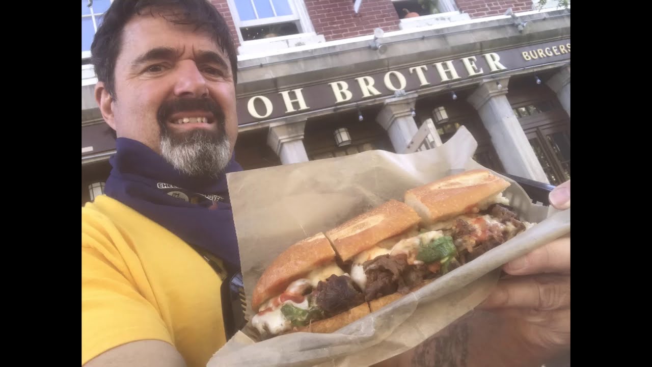 Eating the Cheesesteak Calendar at Oh Brother, 206 Market St, Philadelphia, PA.