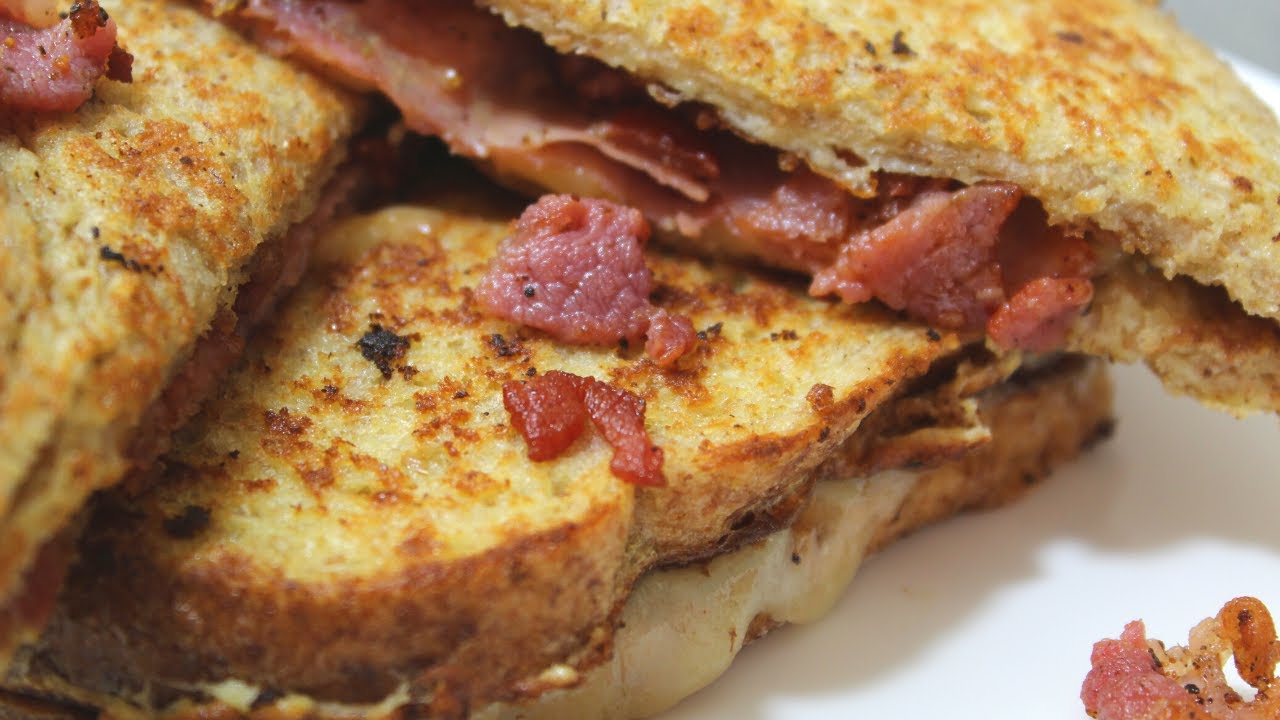 Assemble brown bread(use your fav bread) with bacon, ham, cheese, and bbq sauce.