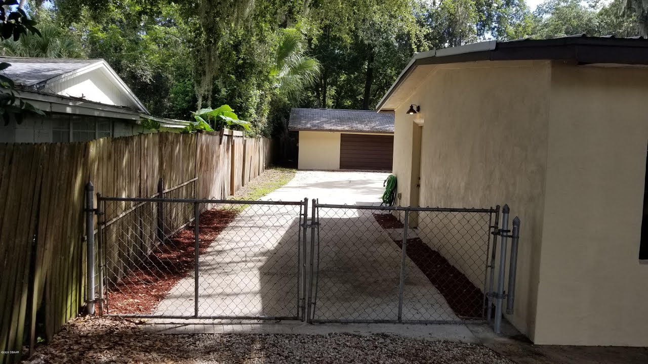 PRICE REDUCED! This charming 3 bedroom/1 bath house in Daytona Beach is close to EVERYTHING! The home features a spacious and open living room and dining room area as you enter the front door. The freshly painted living and dining area has beautiful wood flooring with tile flooring that leads from the entrance to the bright kitchen, which features a stainless steel refrigerator and black appliances. The 3 bedrooms boast new paint with terrazo flooring. The bathroom has tile flooring. French Doors from the kitchen lead out to a covered deck overlooking the large, fenced backyard that features a large detached garage/workshop. The garage has a large window style A/C unit and is perfect for working on projects! This home wont last long!