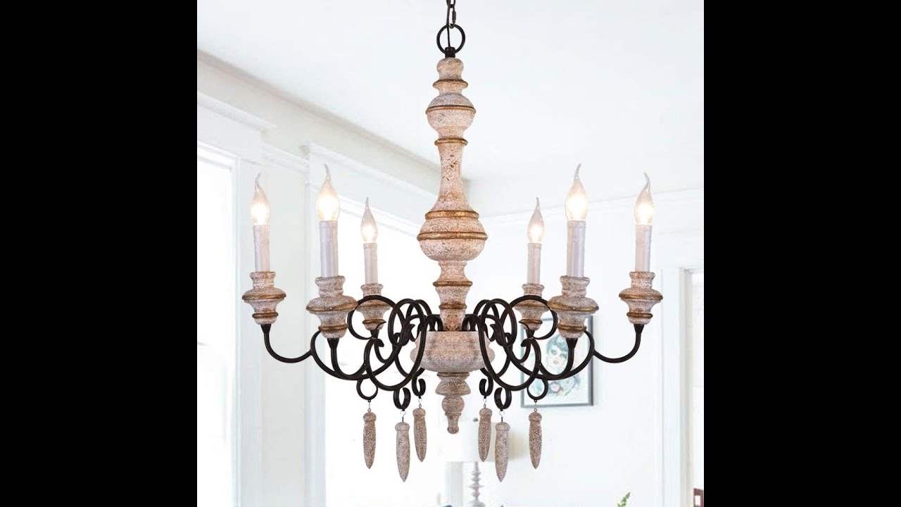 – OSAIRUOS French Country Chandelier Rustic Farmhouse Handmade Wood Distressed Chandeliers for Dining Room Kitchen Bedroom Lighting Fixture Hanging Entryway Chandelier W26.9″ 6 Lights