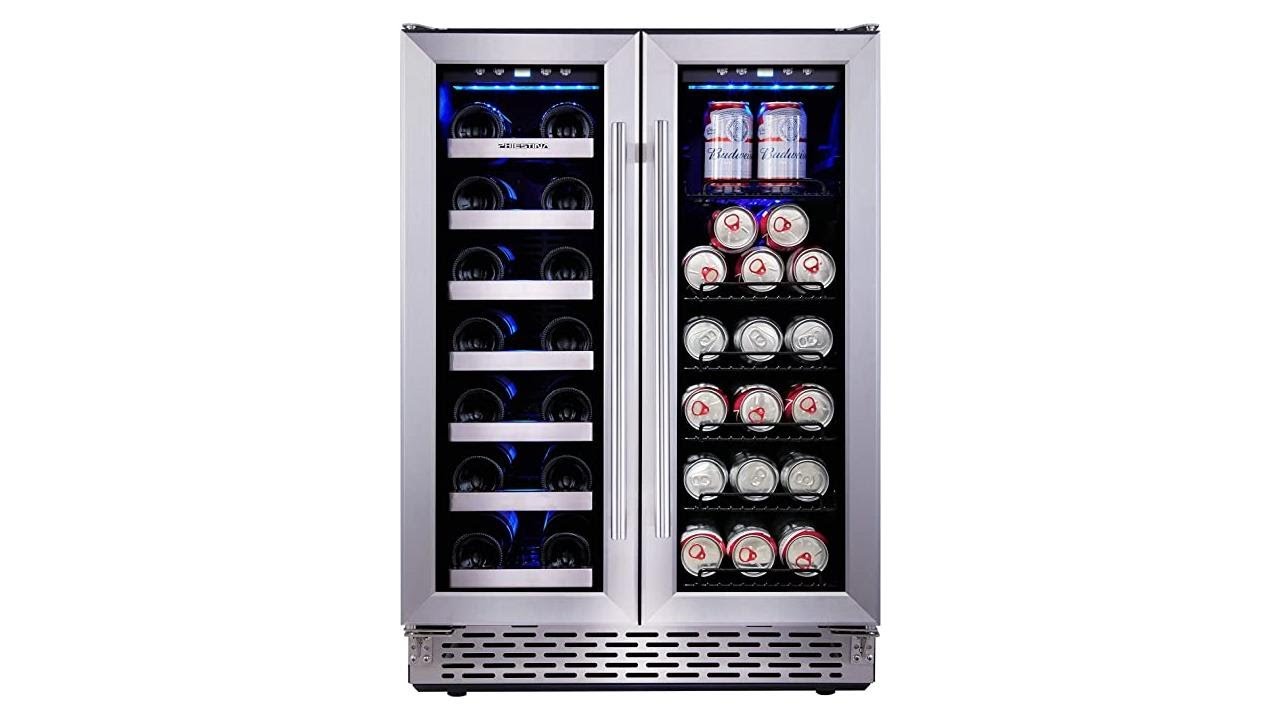 Phiestina 24 Inch Built In Dual Zone Wine and Beverage Cooler with French Door