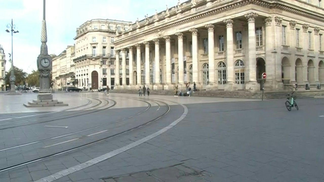 In Bordeaux, rare passers-by walk along the Place de la Comédie, which is usually very busy at the weekend. Police officers patrol the streets as France begins its second lockdown.