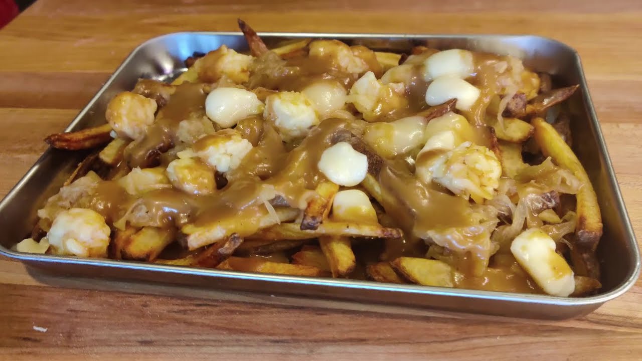 My excuse to not be authentic. Poutine topped with Gruyere and caramelized onions in Sherry wine. FranceFrenchfrench wineonionPoutineVideoVlogWineYouTube