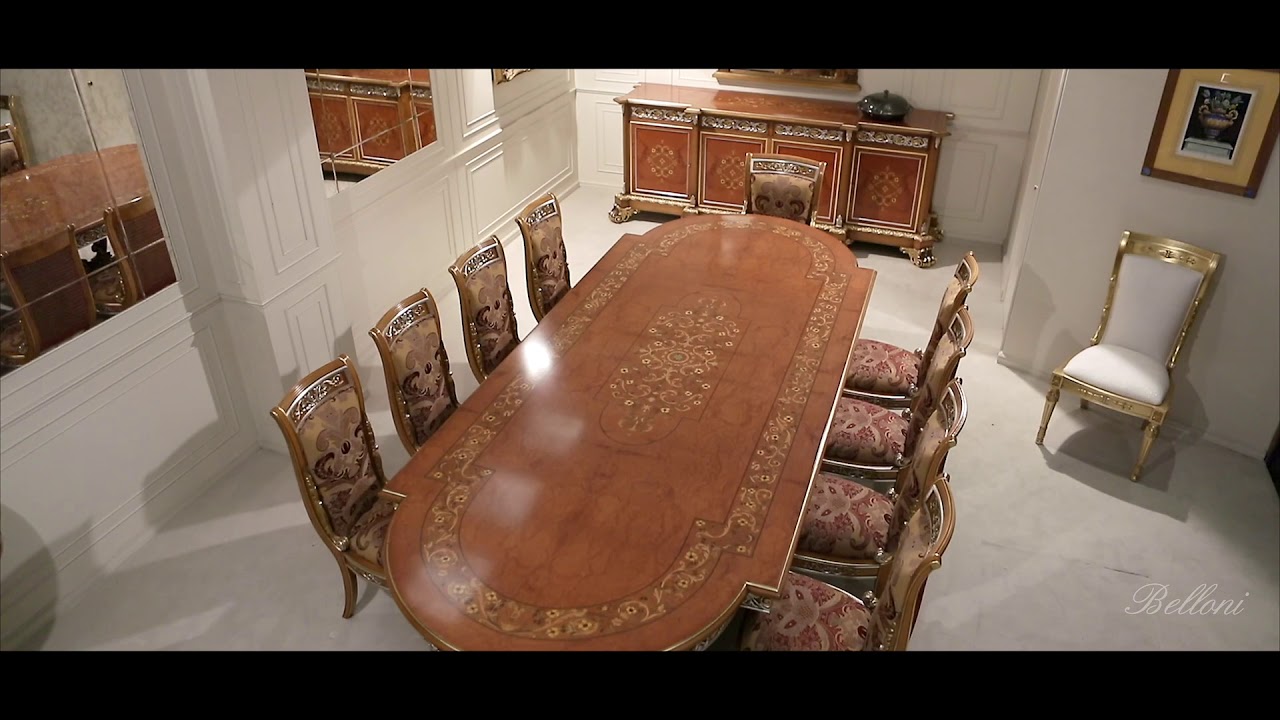 A baroque style room that contains all of Belloni’s know-how, one of the most loved and requested items by those who want a dining room that expresses elegance, refinement and luxury.