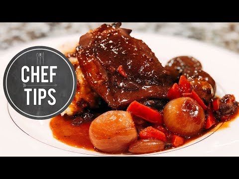 This recipe for coq au vin is easy, but fairly time consuming. Be sure to marinate the chicken for at least 4 hours, or overnight, for the best flavor. Although the original French recipe calls for coq (rooster), most people make it with chicken these days. Use a good quality wine when preparing this dish.