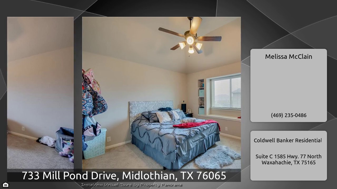 The Virtual Tour for the property at 733 Mill Pond Drive, Midlothian, TX 76065 listed for $345,000: Other homes for sale by Melissa McClain of Coldwell Banker Residential: Room to spread out! Spacious Bloomfield built home, within walking distance to school. This great floor plan offers 2 master suites, one upstairs & one downstairs. Wood floors await you on the bottom level. Recently replaced carpet. Study with french doors makes the perfect office or use it as a bedroom. 2 dining areas is ideal for entertaining for the upcoming holidays. Open concept kitchen, living, & breakfast area. …