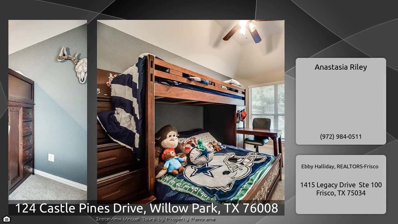 The Virtual Tour for the property at 124 Castle Pines Drive, Willow Park, TX 76008 listed for $249,900: Other homes for sale by Anastasia Riley of Ebby Halliday, REALTORS-Frisco: You will love coming to this Excellent Family Residence gently nestled on a private tree-lined lot in one of the best yet affordable communities serviced by highly sought after Aledo schools. Picture perfect curb appeal w southern porch & lush landscaping w mature trees. The floorplan is abundantly spacious & flows effortlessly boasting an inviting entry flanked by a handsome study w french doors & elegant dining. …