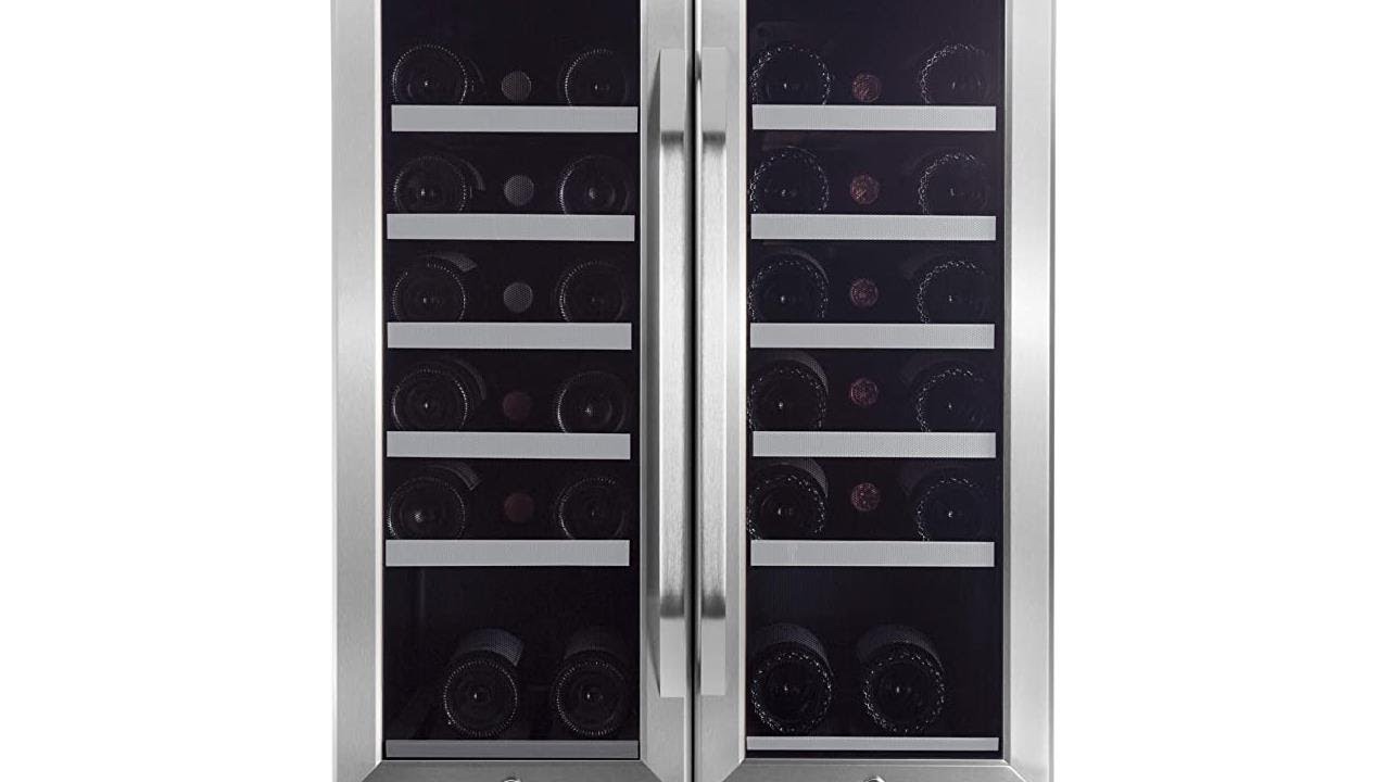 EdgeStar 36 Bottle Built-In Dual Zone French Door Wine Cooler – Black/Stainless Steel