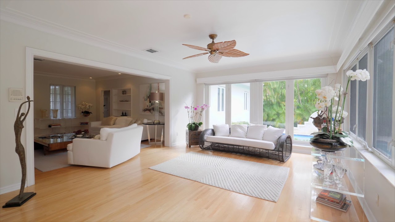 Absolutely charming Classical Contemporary Gables home with beautiful Granada golf course view.Remodeled spacious one story home features wood flooring, recess lighting, crown molding, a lot of natural light, great room, fireplace, formal dining, Florida and family room. French gourmet style kitchen with granite countertop and top of the line appliances with breakfast area. Four large bedrooms each with designed marble bathrooms. Travertine pool patio surrounded by beautiful landscaping.