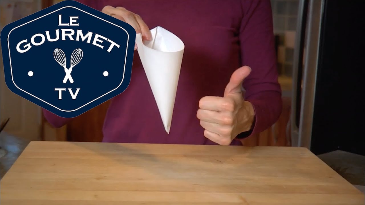 Ever need a pastry bag, or cone for decorating a cake? Julie shows you how to fold one using parchment paper that you can make to any size you need.