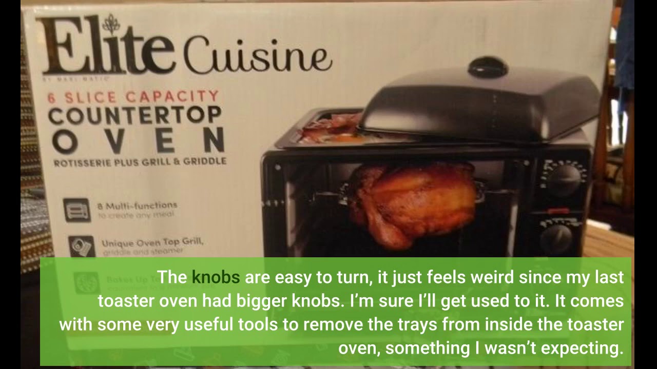– Maxi-Matic Elite Gourmet ETO Double French Door Countertop Convection Toaster Oven, Bake Broil Toast Rotisserie, 23L capacity fits a 12” pizza, 6-Slice, Black
