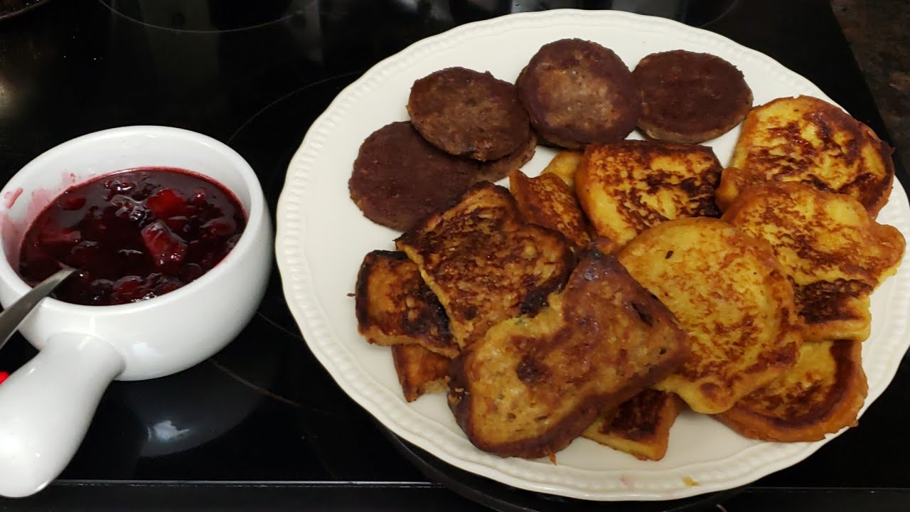 How to make Gourmet French Toast with Pan Sausage and homemade Blue/Strawberry Fruit topping! FranceFrenchFrench GourmetfruitgourmetHomemadehow to make Gourmet French Toasthow to make homemade fresh fruit toppingSausageToastToppingVideoVlogYouTube