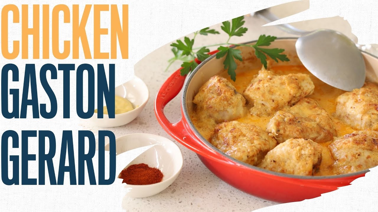 Poulet a la Gaston Gerard (chicken Gaston Gerard) is a famous French chicken recipe dating back to the 1930’s that celebrate cheese, white wine and Dijon mustard. Created by accident (if we believe the story) by the wife of the maire of Dijon during a dinner with the famous food critic of the time Curnonsky. Th chicken is cooked with paprika then served with a cheese, white wine cream and dijon mustard sauce.