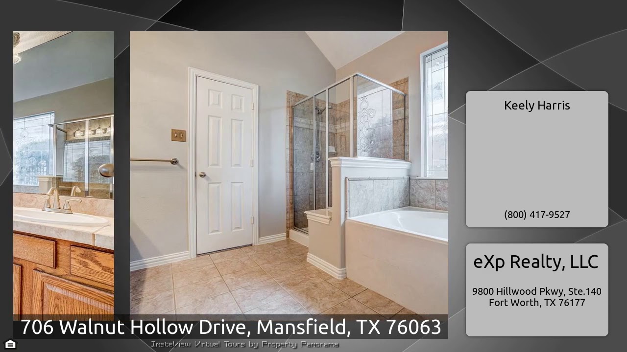 The Virtual Tour for the property at 706 Walnut Hollow Drive, Mansfield, TX 76063 listed for $375,000: Other homes for sale by Keely Harris of eXp Realty, LLC: Move in ready hard to find one story.the functional floor plan boasts three bedrooms, two bathrooms, a large family room, a chef's kitchen with breakfast area, a formal dining room, office with french doors and three-car garage. NEW Carpet, NEW PAINT makes this home move in ready,professional landscape and more. The park-inspired backyard is showcased by a welcoming patio overlooking plenty of room for play. This outstanding home …