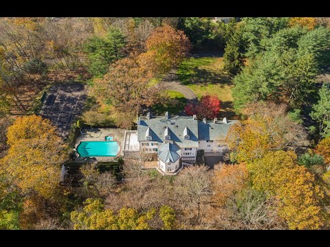 This elegant 6 BR, 6.2 BA, 9,856 sf Colonial is set on 4+ private acres with a pool & spa, poolhouse, tennis court & guest cottage. The dramatic entry foyer with curved staircase opens to this gracious home featuring spacious rooms with lovely design details, 6 fireplaces, French doors, a sunny Living Room, large Dining Room, 2 playrooms, exercise room & a wood-paneled family room with fireplace. The heated Sunroom with French doors opens out to the terrace, pool/spa & yard. The Master Suite boasts 2 baths, multiple closets & an office with built-ins. The large unfinished attic offers extra storage. This professionally landscaped retreat features sweeping lawns, grand trees, formal gardens & mature plantings. There is also a separate 2/3 bedroom guest cottage. This home is the perfect retreat. Located just off Round Hill Road.