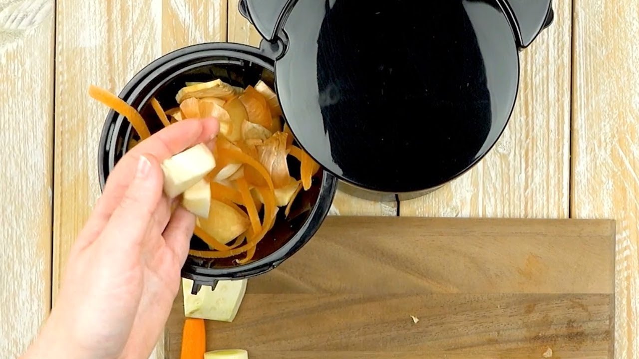1.1 Peel and chop the onion, celery root, carrot, and leek and place the scraps in the filter basket of the coffee machine. Add the bay leaf, juniper berries, and whole allspice, and close the basket.