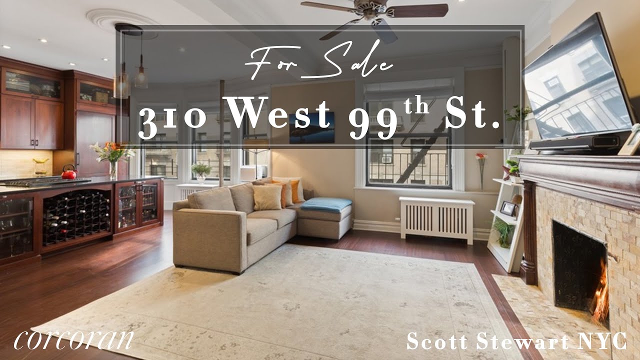 This sprawling 2 bed, 1 bath breathes romance and comfort with its open plan entertaining space, stunning detail, decorative fireplace and French doors! It also includes a built-in home office in the dining room with retractable desk tops and storage. 310 W 99th is on a beautiful prewar park block. | Listing: | #ScottStewartNYC