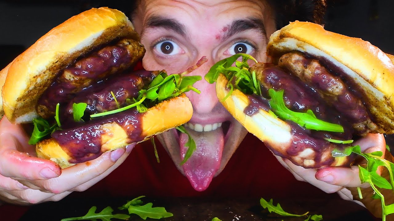 RASPBERRY REDWINE SAUCE! poured over a coriander pork burger topped with apple slices poached in butter, red wine and sugar.