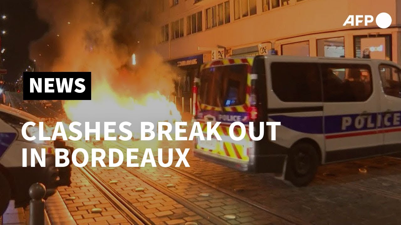 Police clash with protesters marching through Bordeaux without permission, setting fire to trash cans, smashing store windows and tagging walls. Earlier that day, a peaceful rally was held at Place de la Comedie in Bordeaux against a new security law condemned by activists as eroding press freedom.